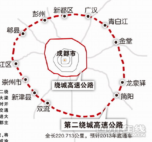第二绕城高速建设工期为3年,预计于2013年底建成通车。